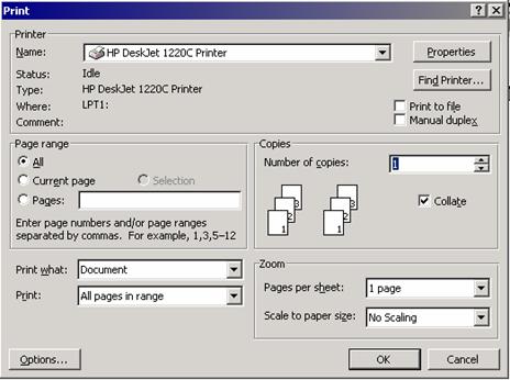 aparitia casetei de dialog Print (Fig.