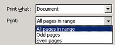 * tiparirea paginilor pare sau impare