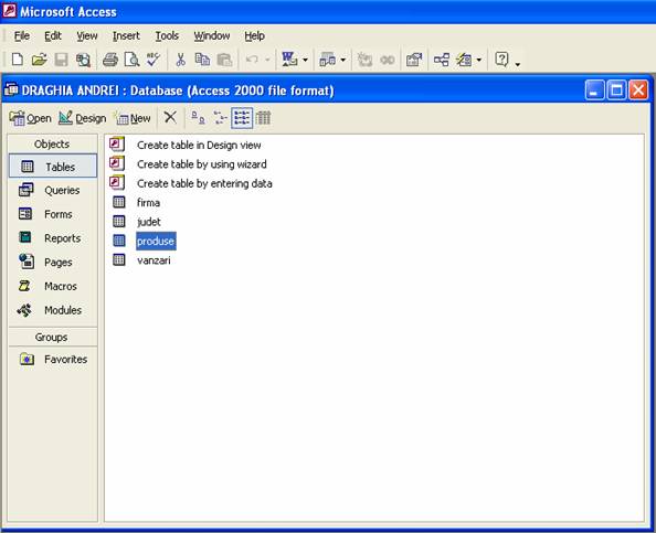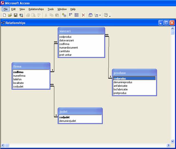 S-a creat o baza de date ce contine 4 tabele ca : firma, judet, produse, vanzari.