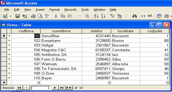 Conducerea unei 'firme ' ce are sub ordine mai multe sucursale de farmacii doreste sa afle evidenta si sa informatizeze activitatea acestora folosind un sistem informatic de date cu baze in programul Access care sa permita e 121h79b videnta , gestionarea corespunzatoare activitatii.