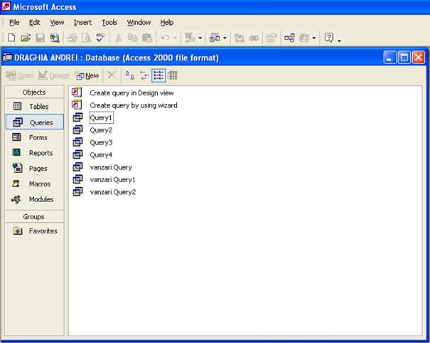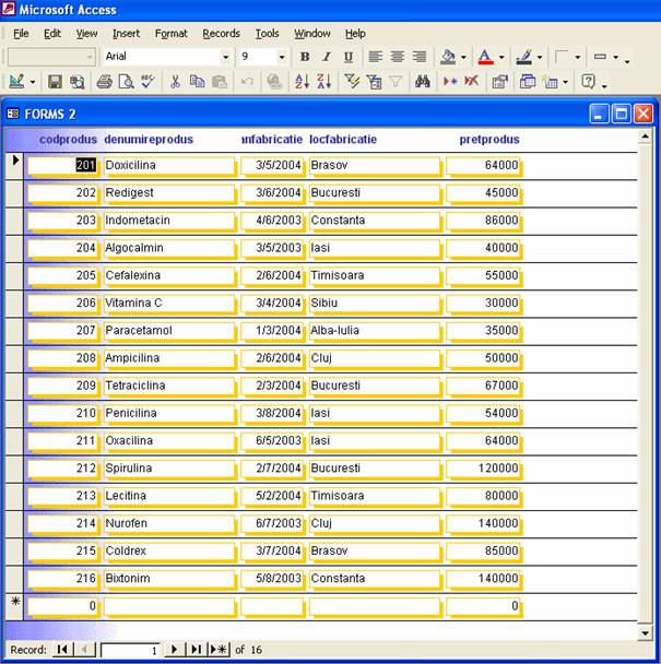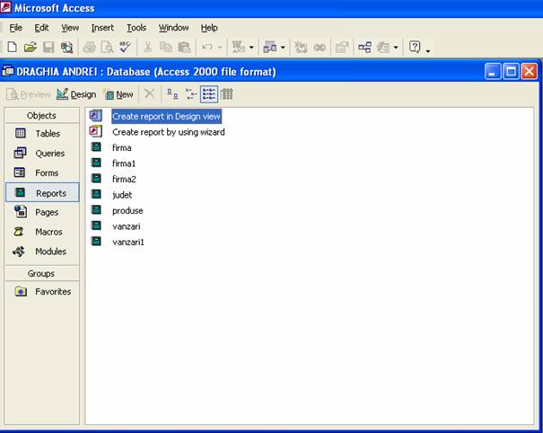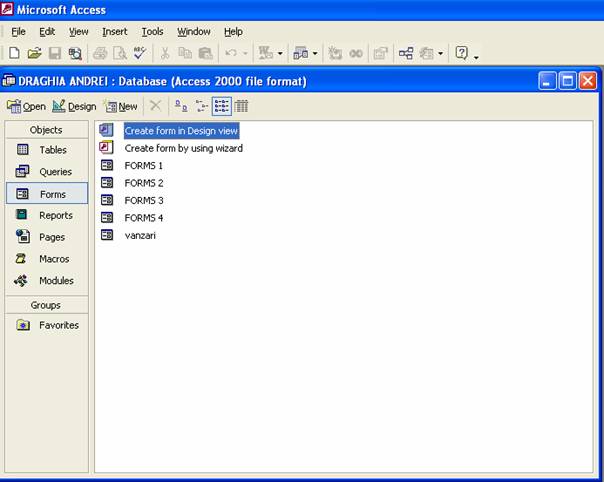 *creare formulare : Using Wizard - se selecteaza campul- se allege sub ce forma- vizualizare- denumire.