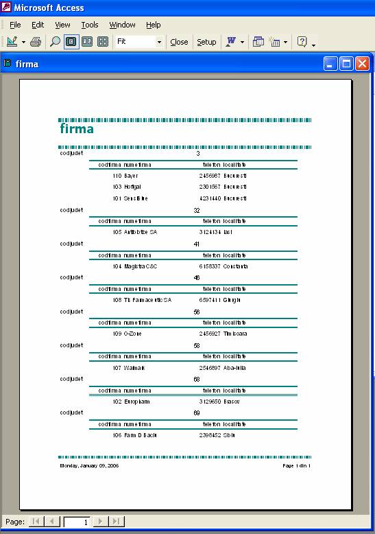 creare rapoarte : Using Wizard - se selecteaza campul - se alege sub ce forma vrei (crescator