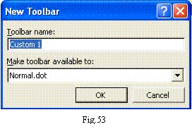 În caseta de dialog New Toolbar (Fig.53) vom tasta numele pentru
