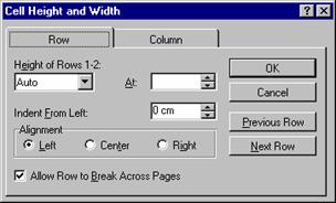 Ca si în cazul redactarii textului din tabel, si pentru formatare puteti sa folositi comenzile obisnuite din Word: barele cu instrumente de lucru, casetele de dialog Font si Paragraph si asa mai departe. Cu ajutorul comenzii Table-Cell Height and Width puteti stabili alinierea rândurilor, latimea coloanelor, înaltimea rândurilor, etc. prin caseta de dialog Cell Height and Width.