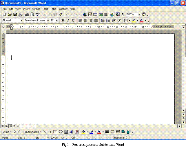 Ctrl+F6. Fereastra procesorului de texte Word este prezentata in Fig.1. Elementele