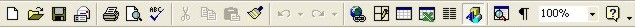 bara de instrumente de lucru (Standard) - contine comenzi de formatare, administrare fisiere si tiparire simbolizate prin butoane a caror functie este afisata prin deplasarea usoara a mouse-ului pe fiecare dintre ele;