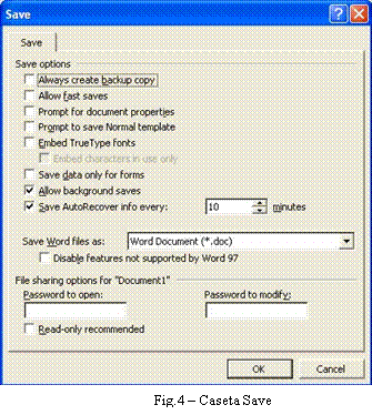 General Options - stabileste parametrii referitori la securitatea documentului din punct de vedere al executarii macroinstructiunilor (Fig.4)