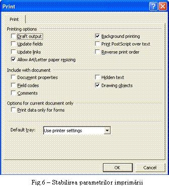 Din butonul Options se pot stabili anumiti parametri ai imprimarii (Fig.6):