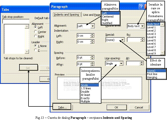 tehnoredactarea la nivel de caracter, la nivel de paragraf si de document;