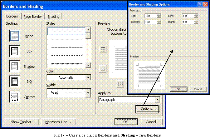 care are drept efect afisarea casetei de dialog din figura
