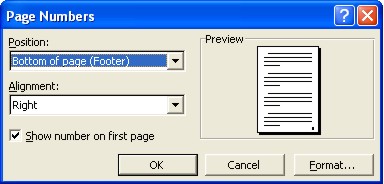 precizarea modului de numerotare - Number format sau specificarea zonei