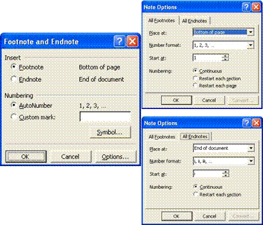 subsol: indicarea valorii de început a notelor de subsol - Start at;