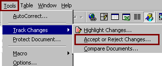 Selectezi Tools => Track Changes => Accept Or Reject Changes.