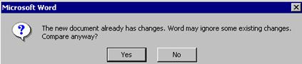 prin care esti intrebat daca faci compararea. Apasarea butonului cu raspuns afirmativ Yes va avea ca efect efectuarea compararii. Compunerea este efectuata si apoi poti accepta sau respinge modificarile din documentul master.