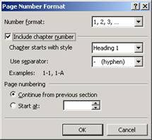 Include chapter number - permite inserarea în numarul paginii si a numarului capitolului si a unui separator între acestea;