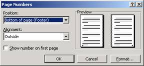 Pages Number - permite stabilirea formatului
