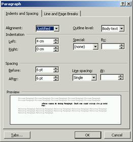 Pe ecran va fi afisata caseta de dialog Paragraph. In continuare procedezi ca in cazul anterior.