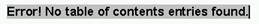 Inainte de a insera cuprins intr-un document trebuie ca acesta sa contina paragrafe pentru care s-a facut precizarea nivelului pe care se gaseste titlul de capitol. In caz contrar in locul in care este inserat va fi afisat un mesaj de eroare ca cel prezentat in imaginea urmatoare.