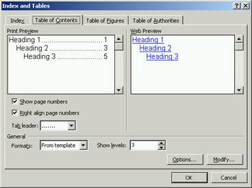 In campul Show levels: (afiseaza nivelele) stabileste numarul de nivele care vrei sa apara in cuprins.