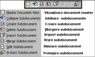 Īn urma actionarii butonului Collapse Subdocuments fiecare subdocument este redus la o hiperlegatura; numele butonului se schimba īn Expand Subdocuments (Extindere subdocumente).