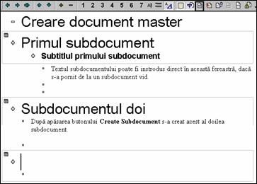 de pe bara Outlining pentru a crea un subdocument nou. Primul lui