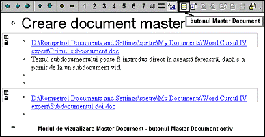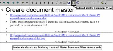 vizualizare. Dupa cum observi modul de vizualizare Master Document este o