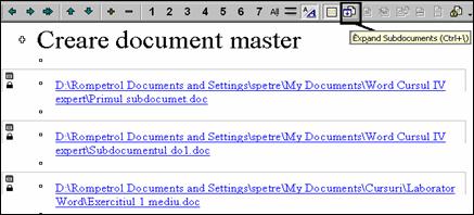 n Extinde toate subdocumentele existente īn documentul master (daca este necesar extinde toate titlurile subdocumentului).
