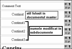 Daca un subdocument contine stiluri care nu se gasesc īn sablonul documentului master, editorul Word le va adauga pur si simplu la acest sablon.