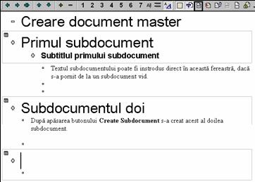 de pe bara Outlining pentru a crea un subdocument nou. Primul lui