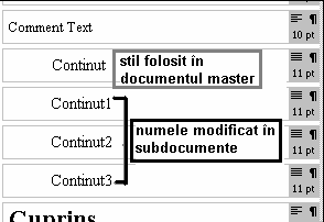 Daca un subdocument contine stiluri care nu se gasesc in sablonul documentului master, editorul Word le va adauga pur si simplu la acest sablon.