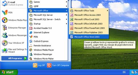 - click pe Start / All Programs / Microsoft Office / Microsoft Word 2003