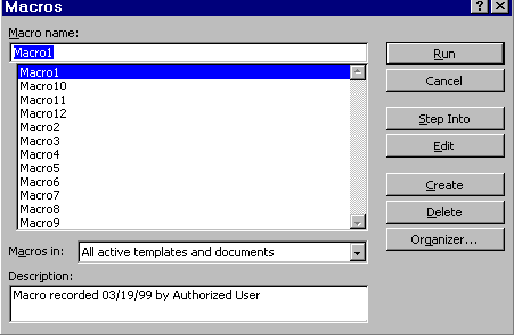 &nbs 848y249i p; Numele fisierului - sunt afisate toate macro-urile din documentul curent.