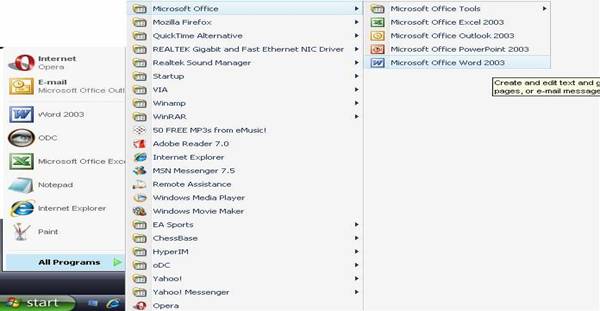 Fig.2 Lansarea procesorului de texte Word din meniul rapid.