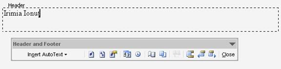 Pentru realizarea acestor gen de pagini se selecteaza comanda Header and Footer din meniul View, dupa care se personalizeaza antetul dupa preferinta.