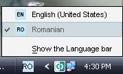 De asemenea, tastatura româneasca poate fi activata din taskbar(fig. 8)