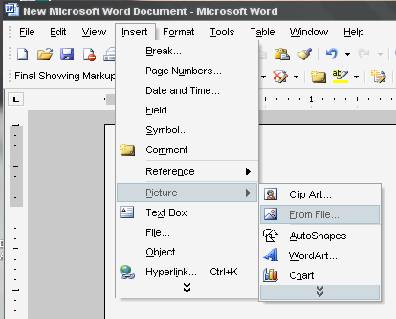 Inserarea unei imagini se realizeaza din meniul Insert, optiunea Picture, actionând comanda From File.(fig. 10) dupa care se selecteaza poza din locul unde se afla stocata.