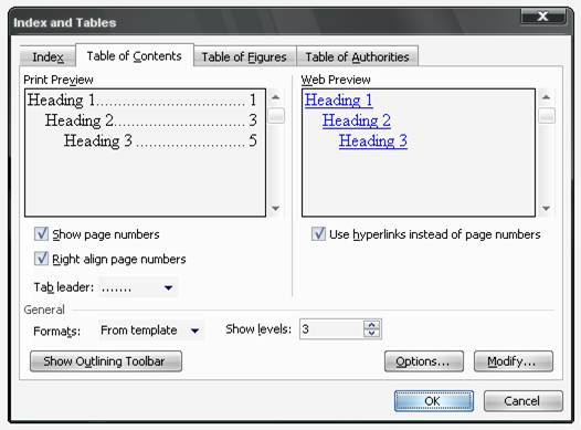 ▪Show page numbers - pentru afisarea numarului de pagina de la care incepe capitolul.