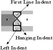 Acest tip de indent este inversul tipului obisnuit, creat cu tasta TAB. El a fost creat prinzandu-se cu mouse-ul de markerul "First Line Indent" si tragand la stanga. Indentul normal, la dreapta, este automat creat la apasarea tastei TAB.