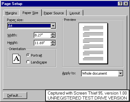 din marimile predefinite: A4, A5, Letter, Legal, etc. De asemenea se poate da o