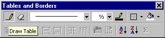Se apasa butonul Tables and Borders din bara standard si apare bara de lucru cu acelasi nume, bara dedicata lucrului cu tabele si chenare. Aceeasi bara mai putea fi apelata din meniul View - Toolbars.