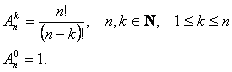 , n, k numere naturale cu n nenul se numeste aranjament de n elemente luate cāte k.