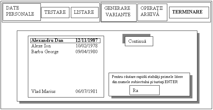 OPERAŢII ARHIVĂ DATE PERSONALE GENERARE VARIANTE LISTARE TESTARE TERMINARE
