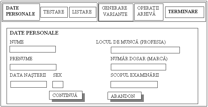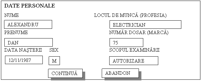 Daca subiectul a fost īregistrat anterior, se bifeaza numele īn lista, se apasa cu mousul pe optiunea <Continua> . Pe ecranul calculatorului apare urmatorul continut: