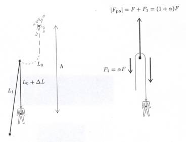 Neglijând frecarea în carabiniere, putem calcula foarte usor 2 efortul maximal exercitat asupra corzii si centurii în timpul caderii, gasind: