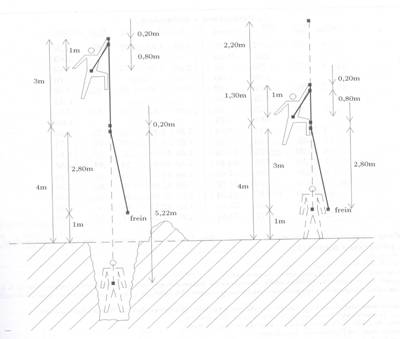 S-a studiat, în special, cazul în care caderea se produce în momentul asigurarii carabinierei în punctul intermediar urmator.