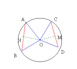 Daca A si B sunt doua puncte distincte ale unui cerc, atunci diametrul perpendicular pe coarda AB imparte coarda si arcele in doua parti congruente.