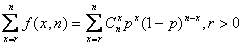 3) In diverse probleme (cum ar fi cazul unei selectii repetate, in care probabilitatea evenimentului care ne intereseaza este aceeasi in fiecare proba) din statistica se foloseste functia de probabilitate binomiala,trebuind sa se calculeze sume de forma: