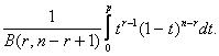 Pentru integrala din membrul doi, numita functia Beta incompleta, sunt construite tabele in raport cu valorile p,r,n. Din aceste motive, formula de mai sus este folosita in practica pentru calculul probabilitatii, ca dintr-o selectie repetata sa obtinem cel mult un numar r de elemente care sa posede o anumita caracteristica.