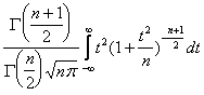 O variabila aleatoare X are o distributie Student (Student este pseudonimul matematicianului englez V.S.Gosset) sau 't' cu n grade de libertate, daca functia densitate de probabilitate este definita de: