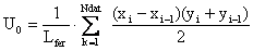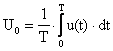 Calculul valorii U0 (relatia 2), se face pornind de la observatia ca ea este numeric egala cu valoarea medie a ariei cuprinse intre axa orizontala si graficul curbei. Tinand cont de felul in care a fost definita functia u(t), aria totala se calculeaza ca suma a ariilor tuturor trapezelor, asa cum este hasurat trapezul din exemplul din fig. 2.